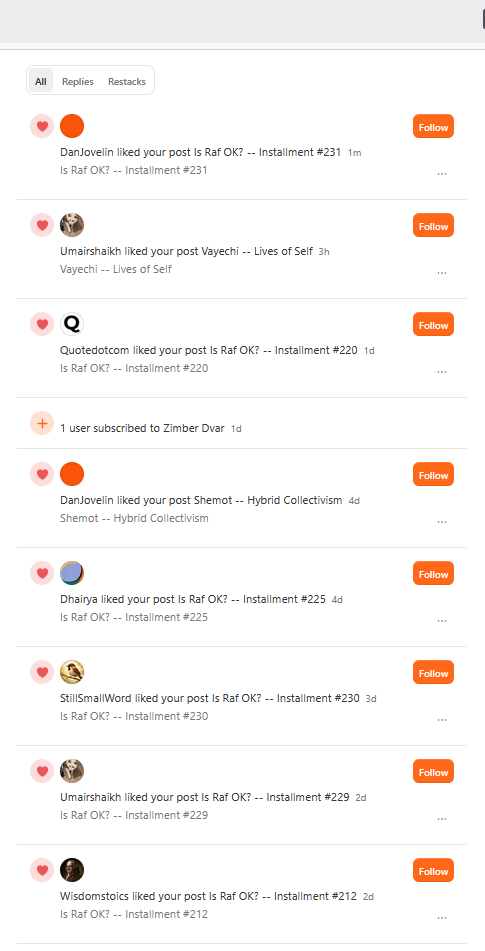 Doing a survey of the IDs that are posting the Likes shows that they are clearly bot accounts. Either restacking other content, making air-filled posts on Substack, or both.